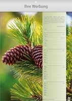 Titelblatt, 12 Monatsblätter, Rückwand, Klappfälzel / Format: 24,5 x 34,5 cm (Werbefläche: 24,5 x 4 cm)