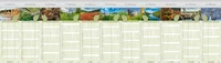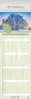 Titelblatt, 12 Monatsblätter, Rückwand, Klappfälzel / Format: 15,5 x 48,5 cm (Werbefläche: 15,5 x 6cm)